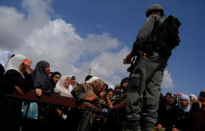 On Friday I returned to the Kalandia checkpoint for a whole morning, getting a feel for the situation and taking photos. It happened to be a particularly dramatic day to be there - the last Friday in Ramadan is one of the holiest days of the year for Muslims and there were throngs wanting to cross from the West Bank into Jerusalem to pray at Al Aqsa mosque and Dome of the Rock.